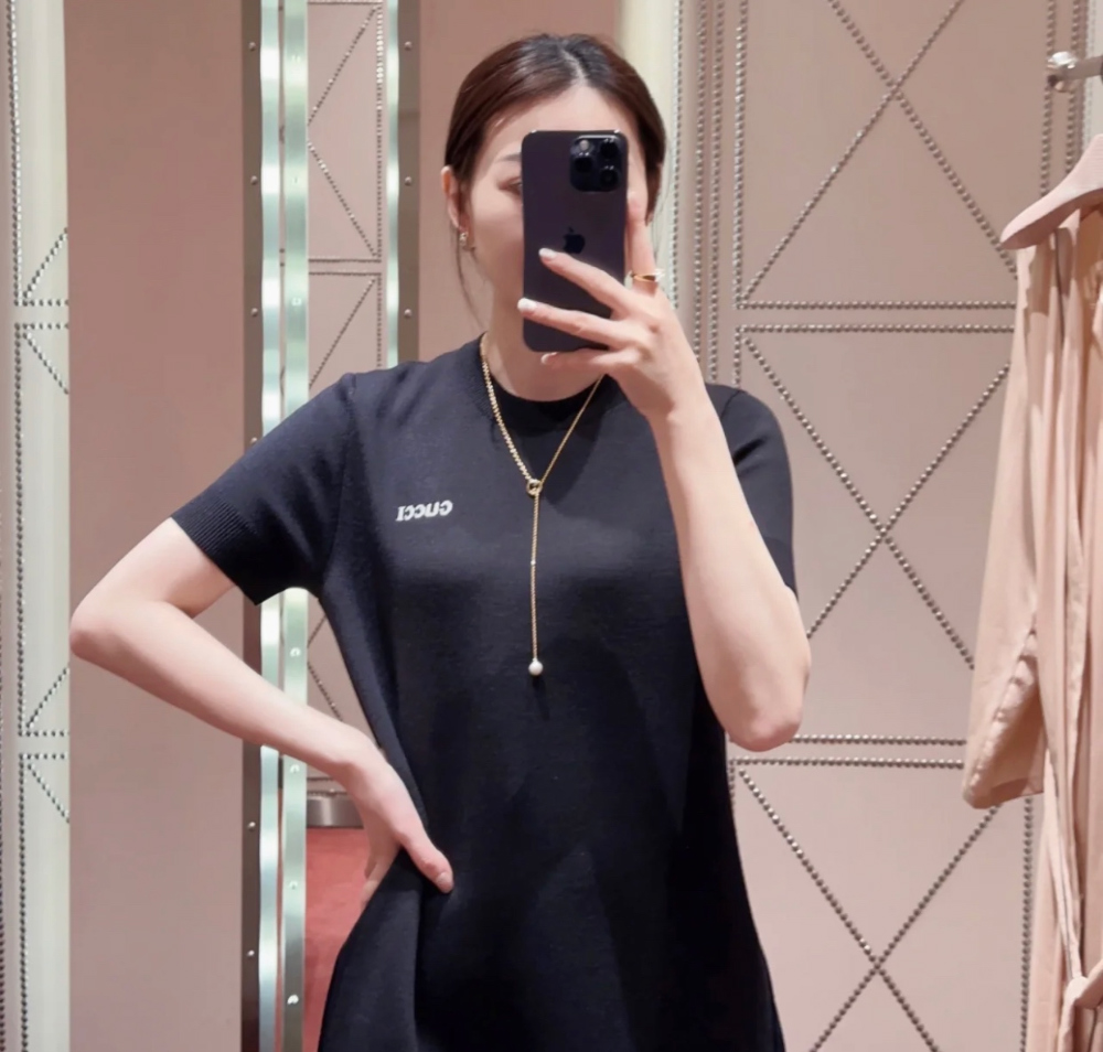 구찌 울 자카드 미니 드레스