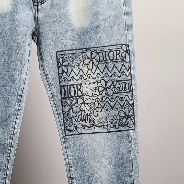 디올 포켓벌자수 프린팅 청바지