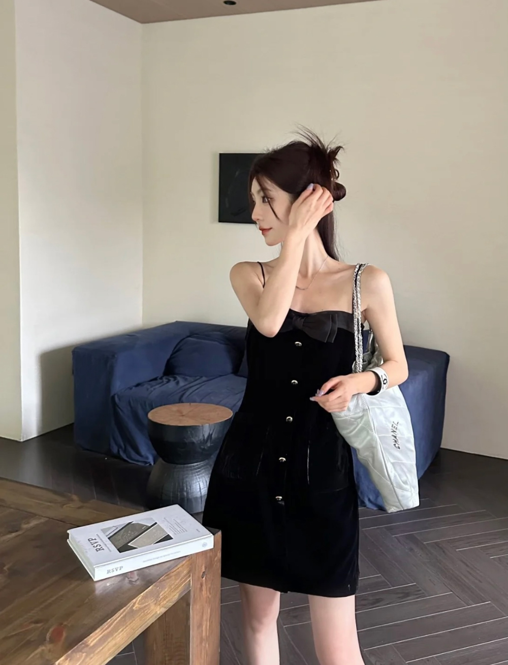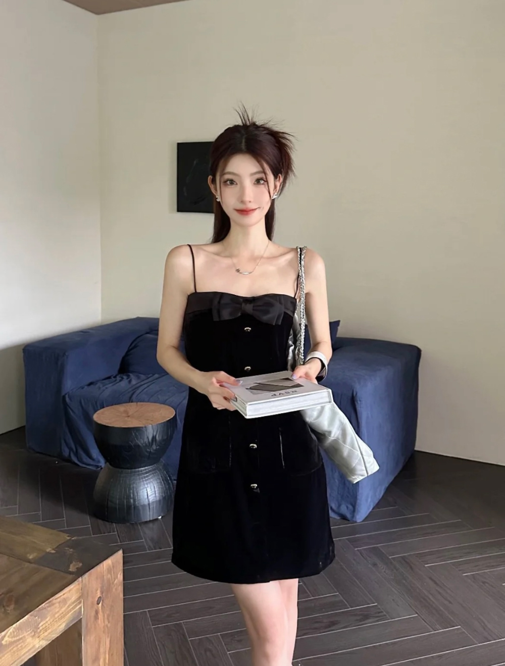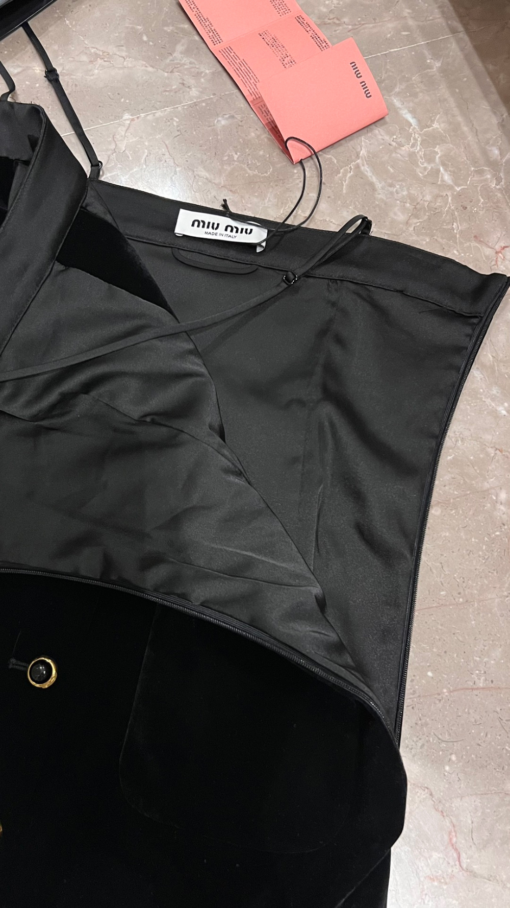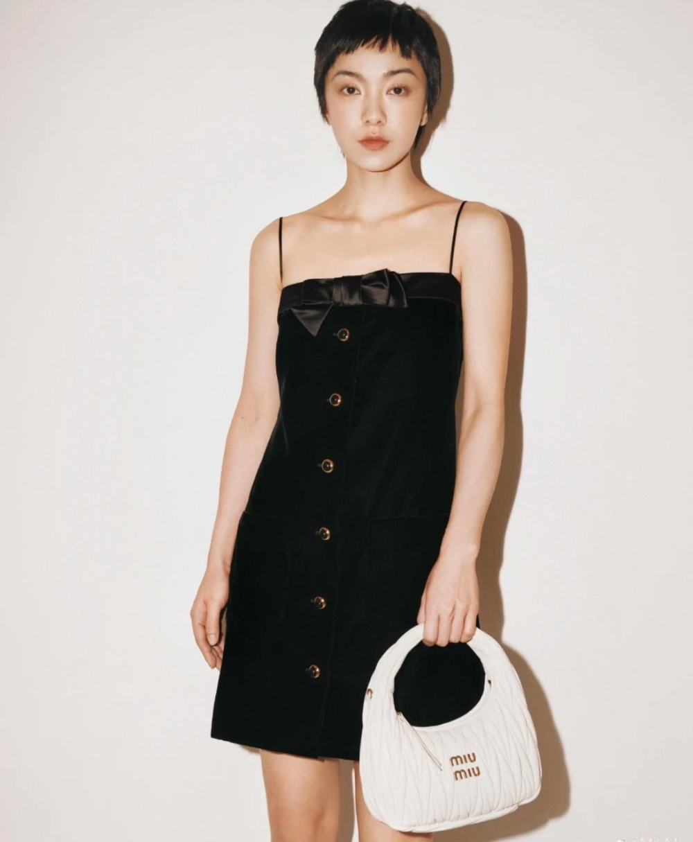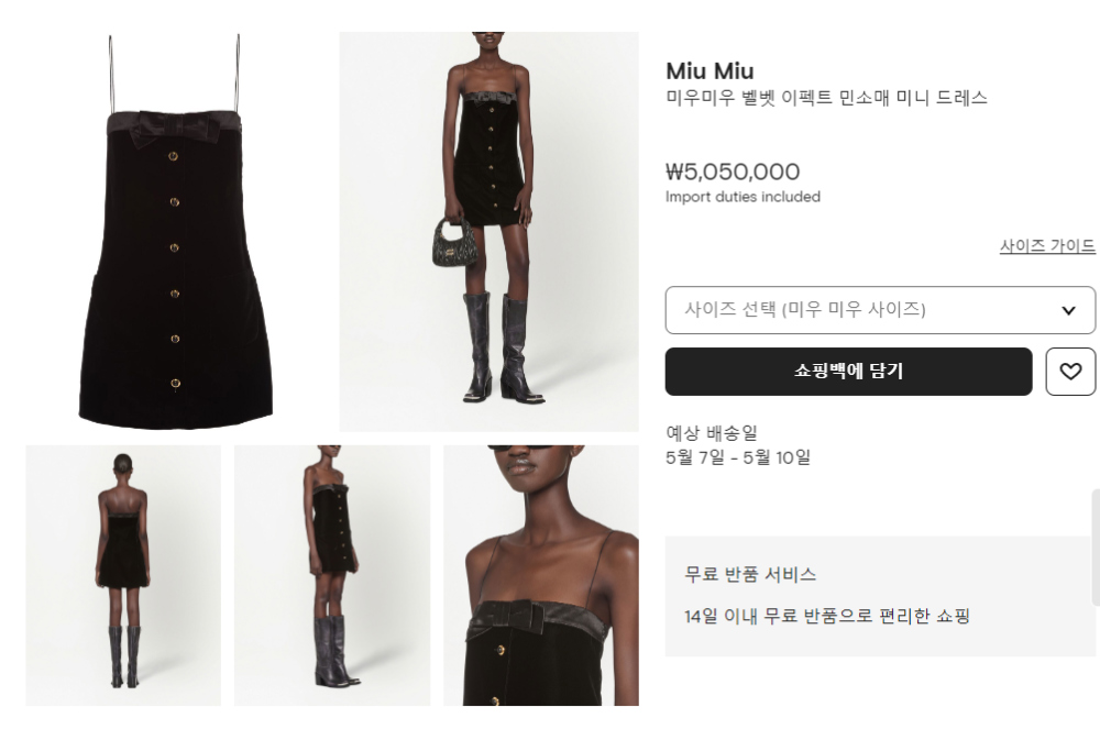 미우미우 벨벳 이펙트 민소매 미니 드레스