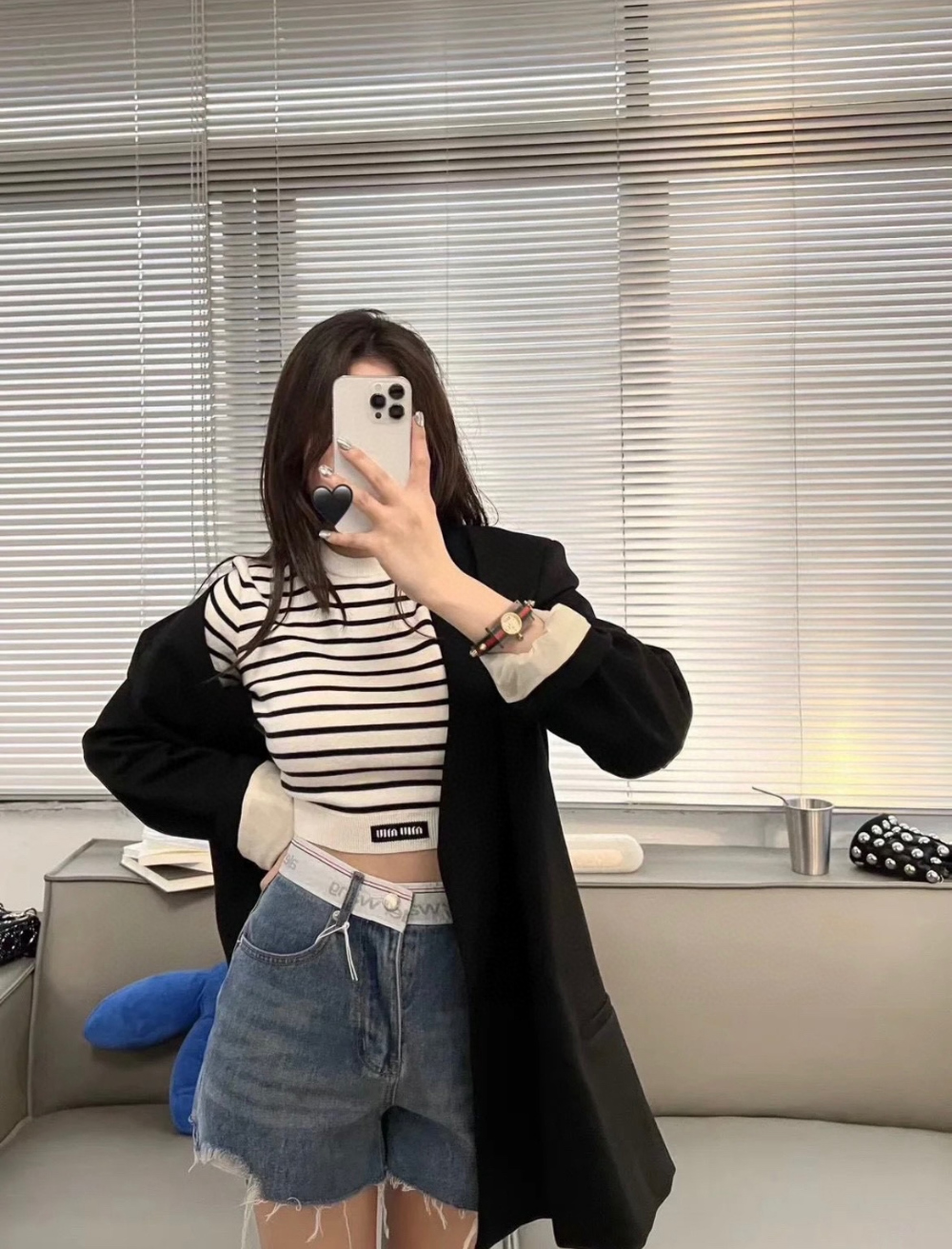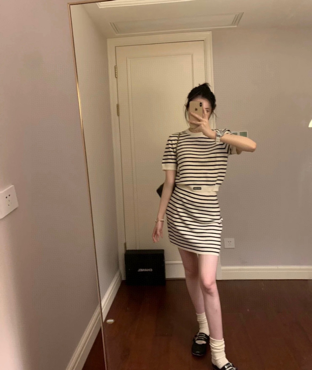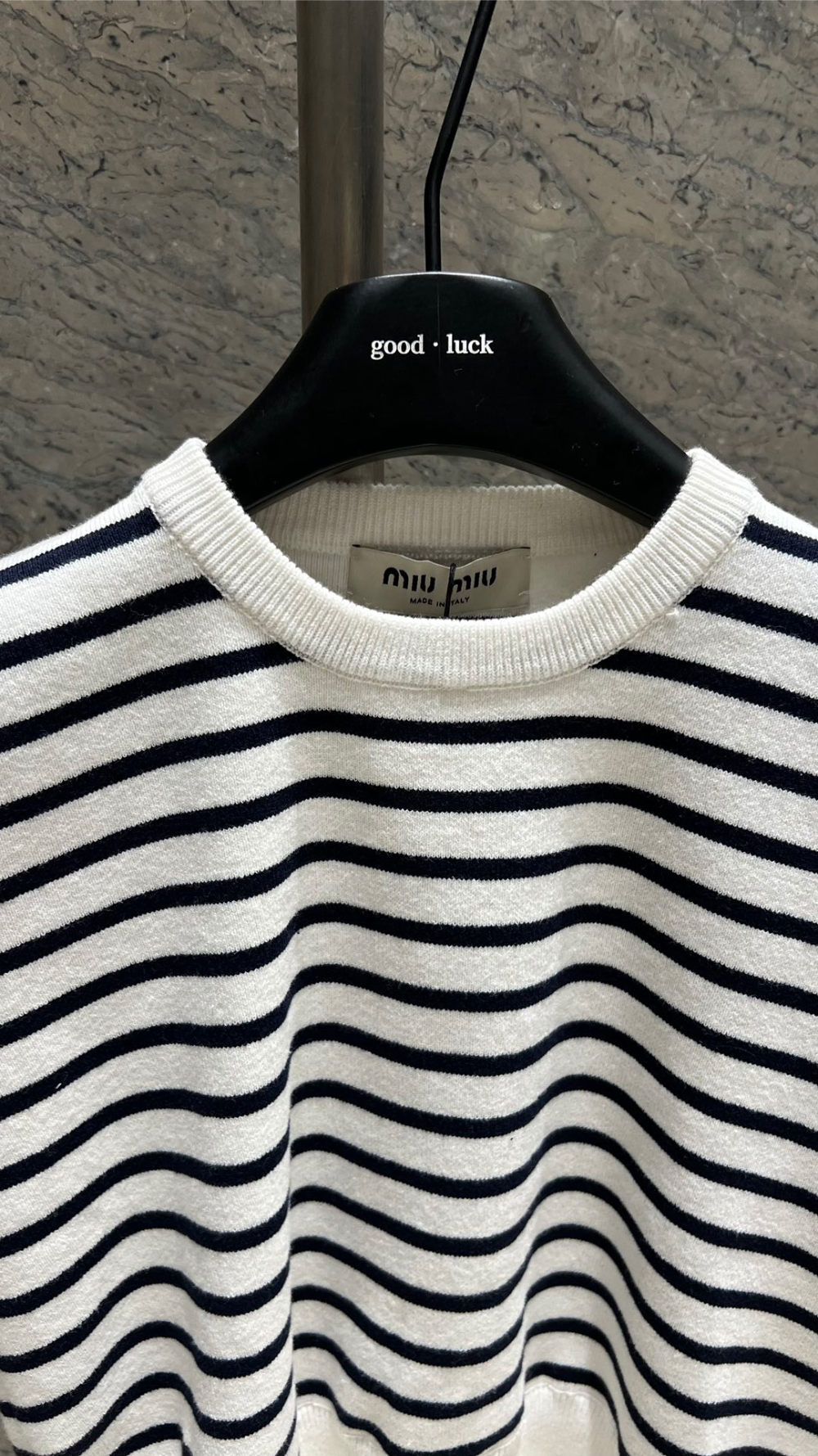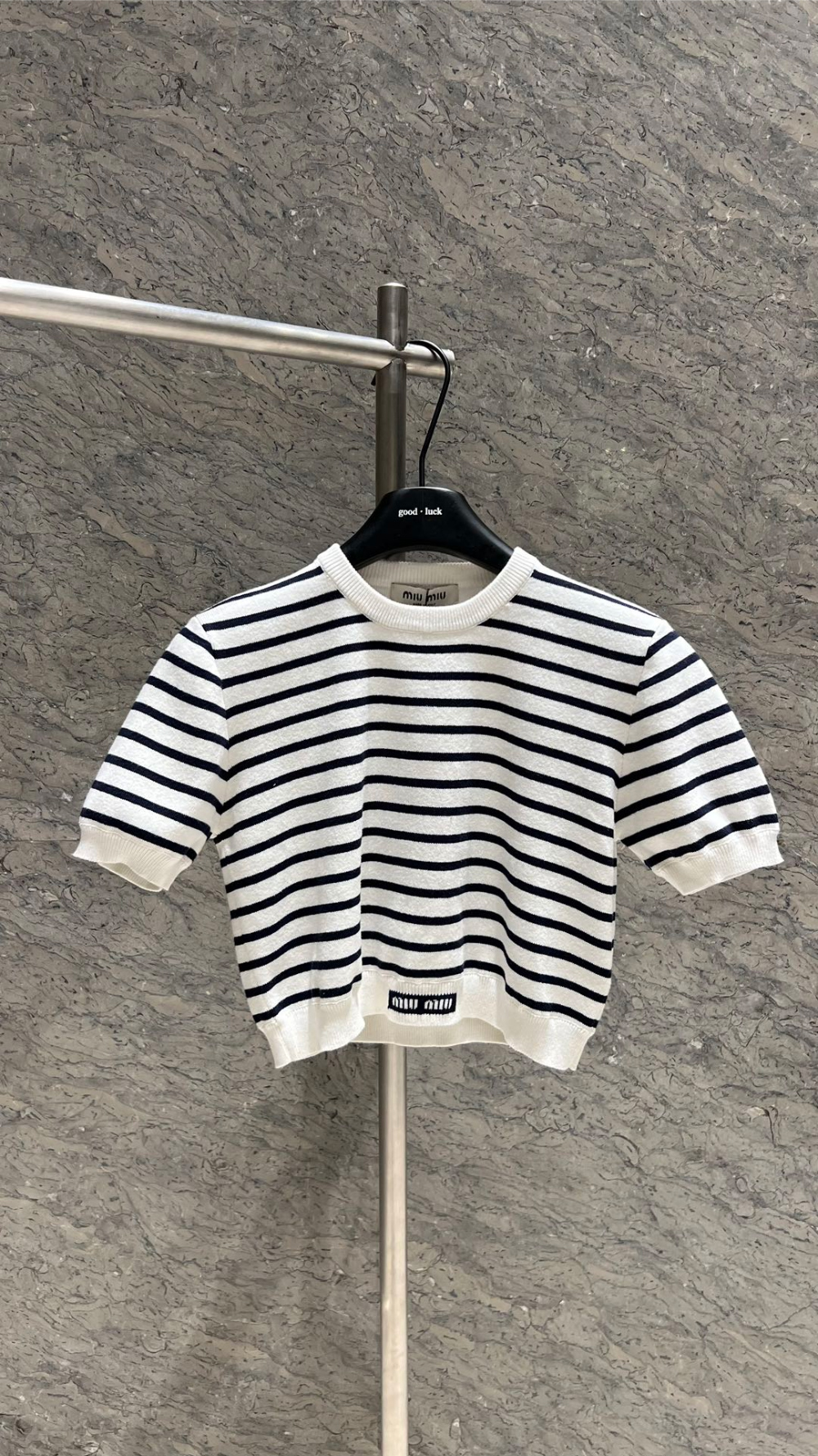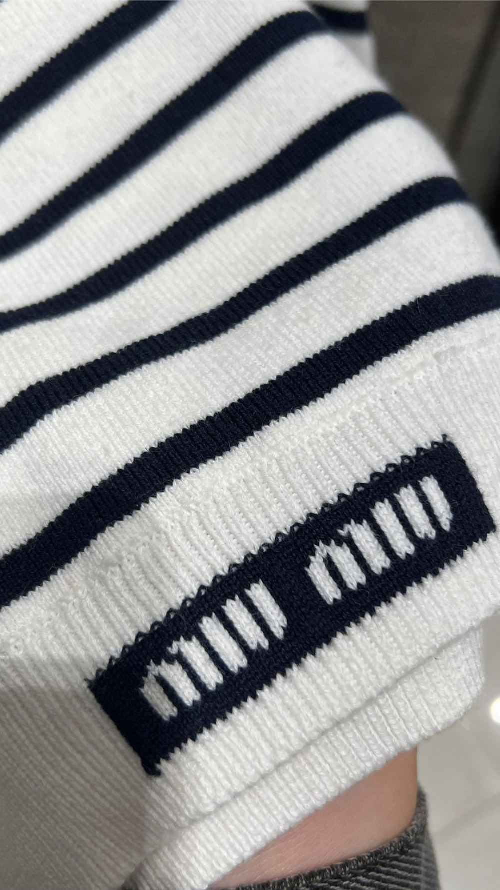 미우미우 스트라이프 자카드 크롭 니트 탑