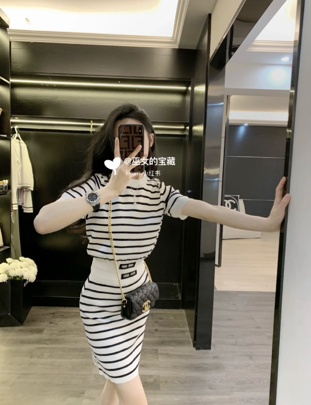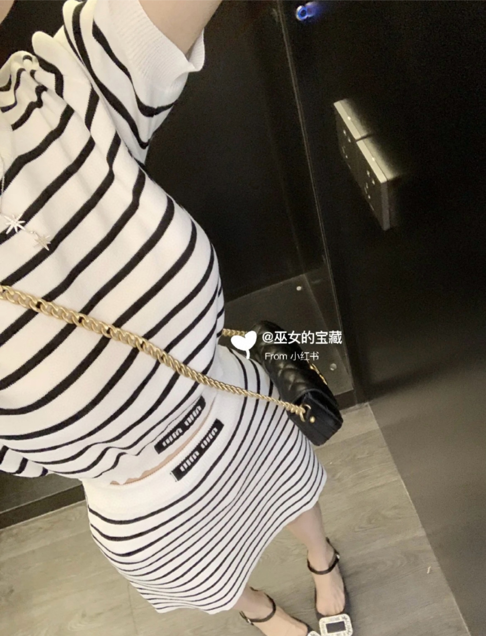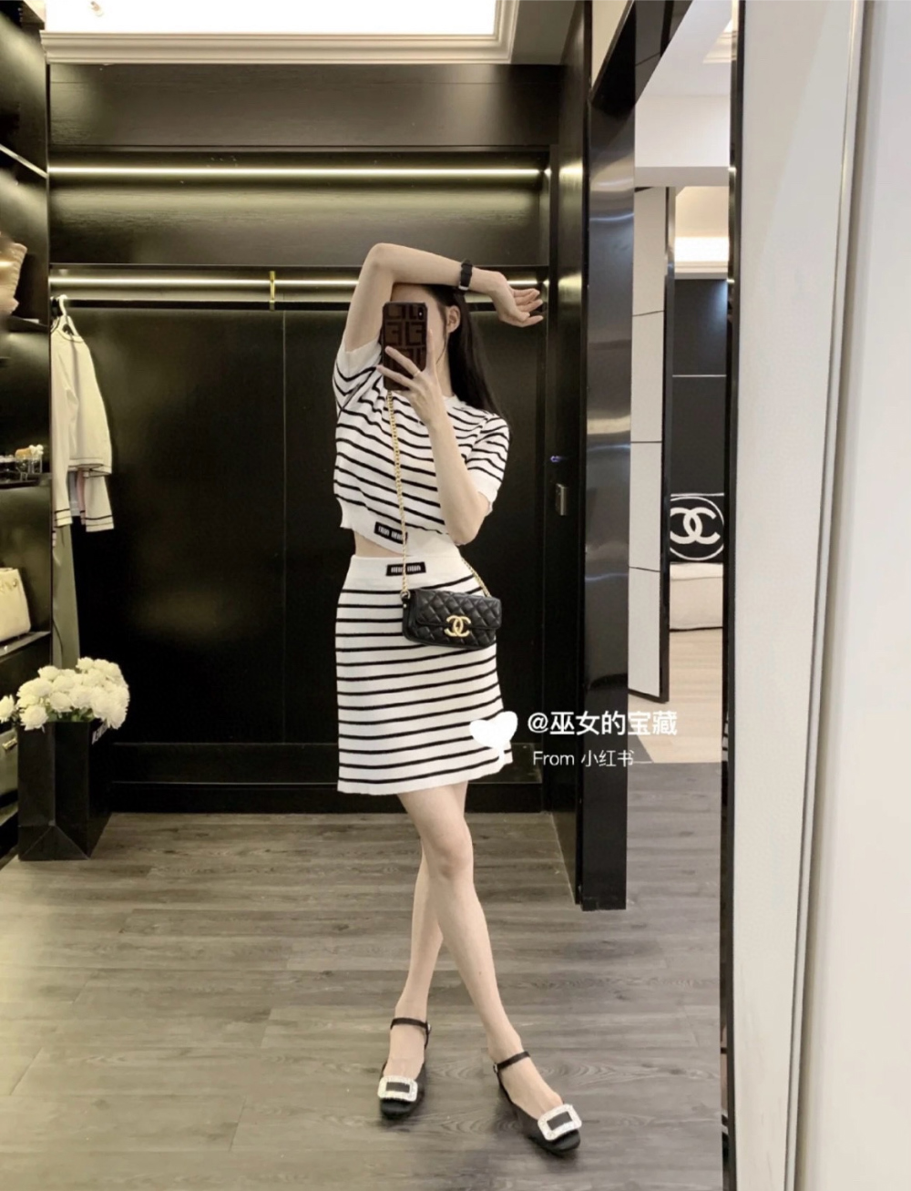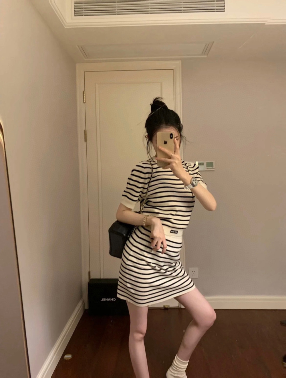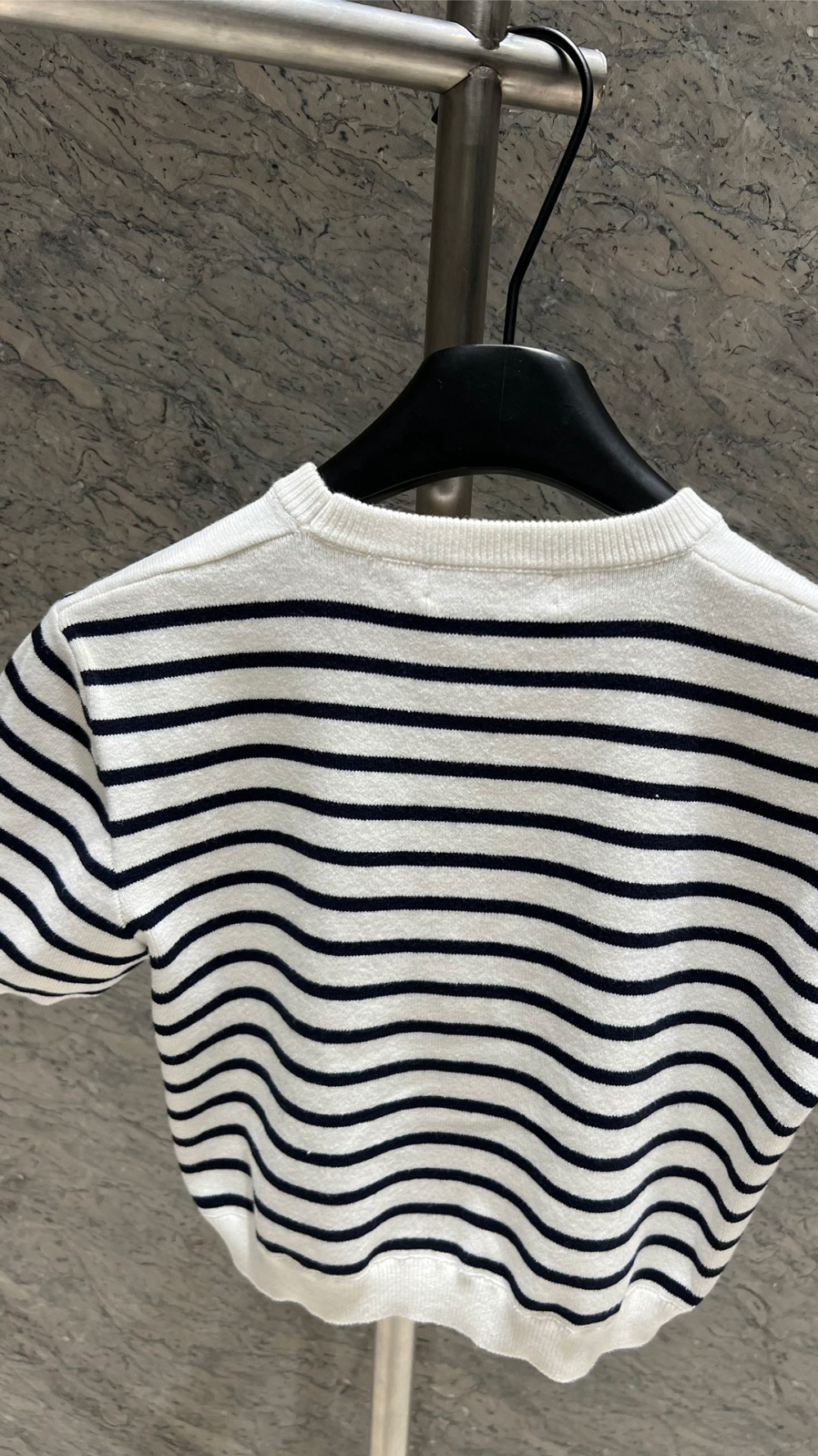 미우미우 스트라이프 자카드 크롭 니트 탑