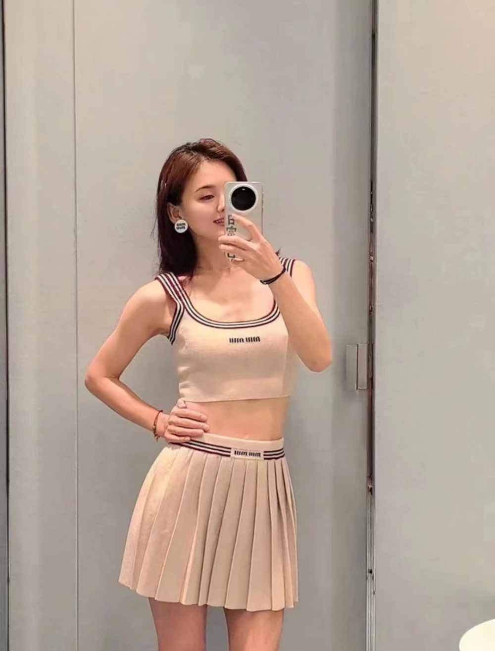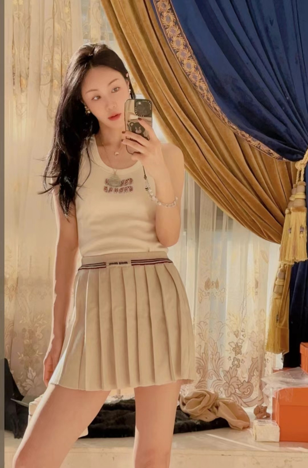 미우미우 플리트 미니 스커트