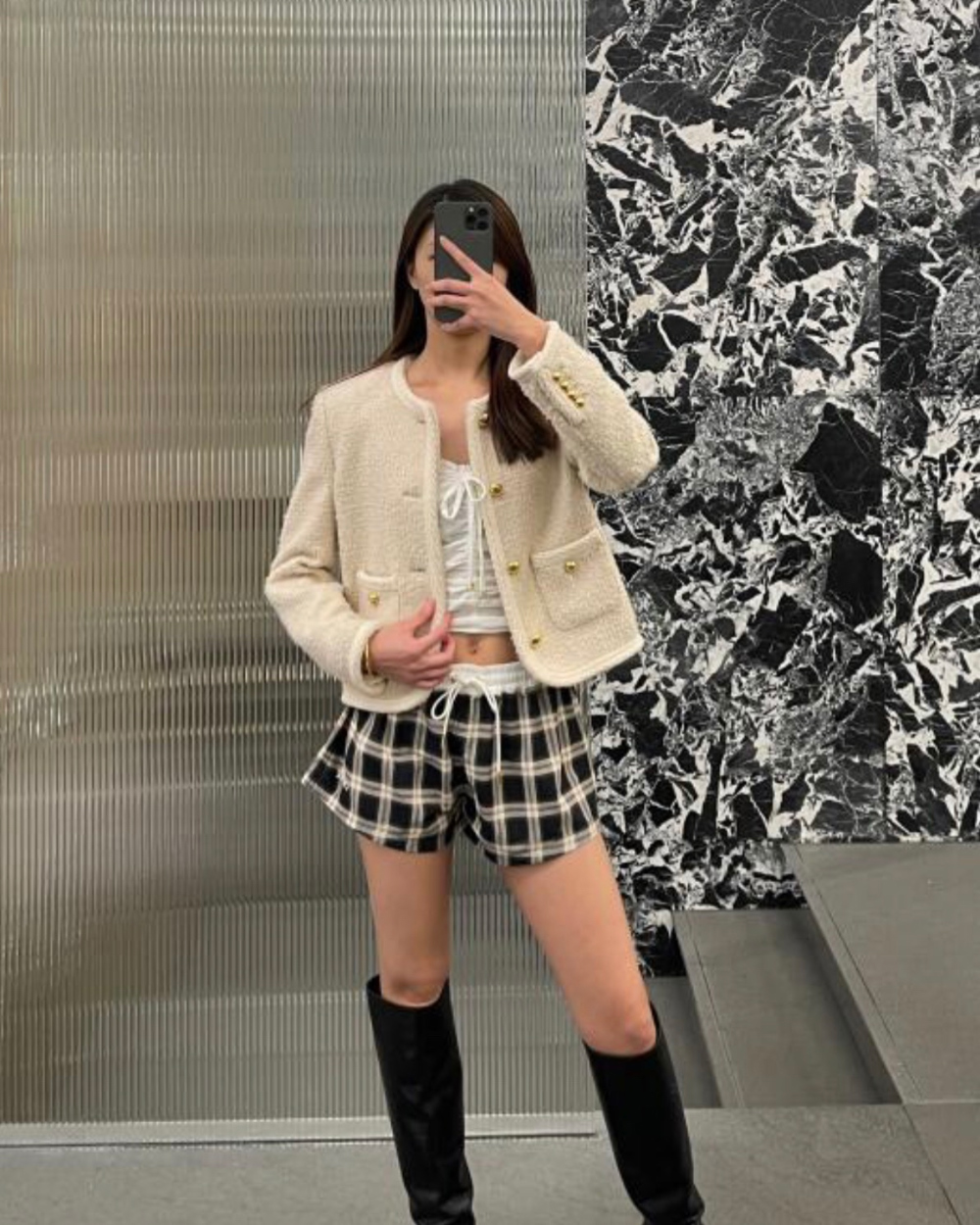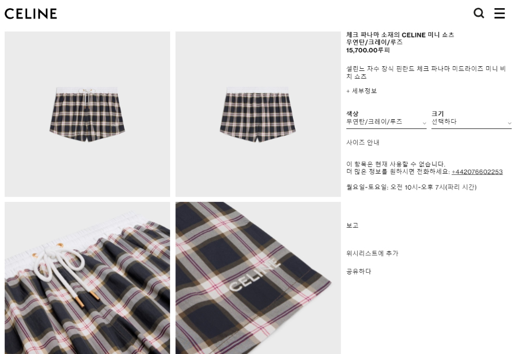 셀린느 체크 파자마 미니 쇼츠
