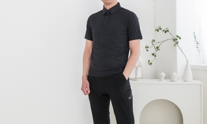 어뉴 넥 로고 포인트 맨즈 셔츠