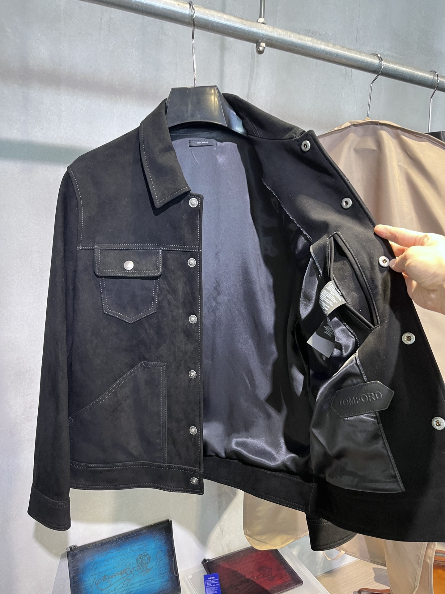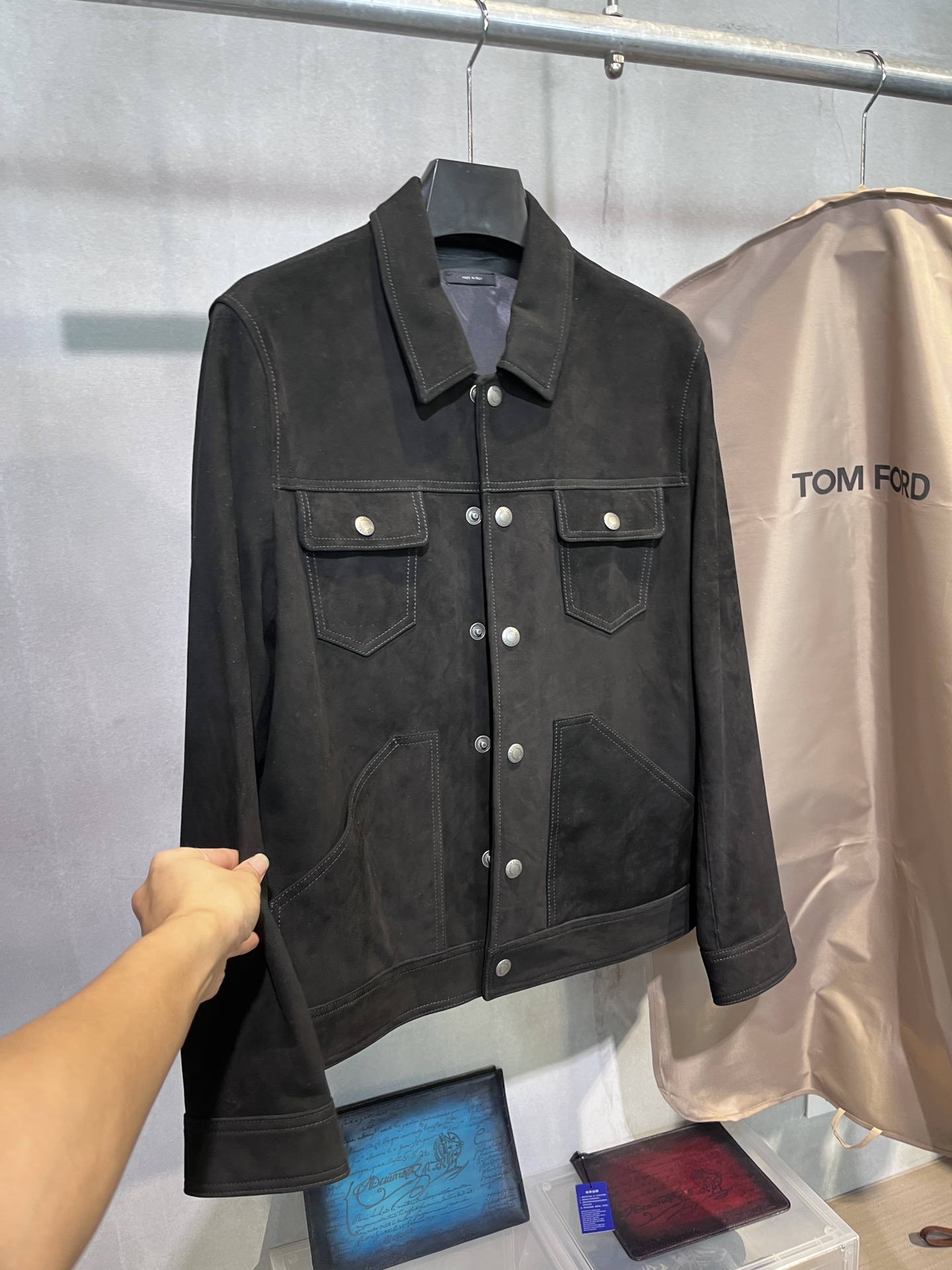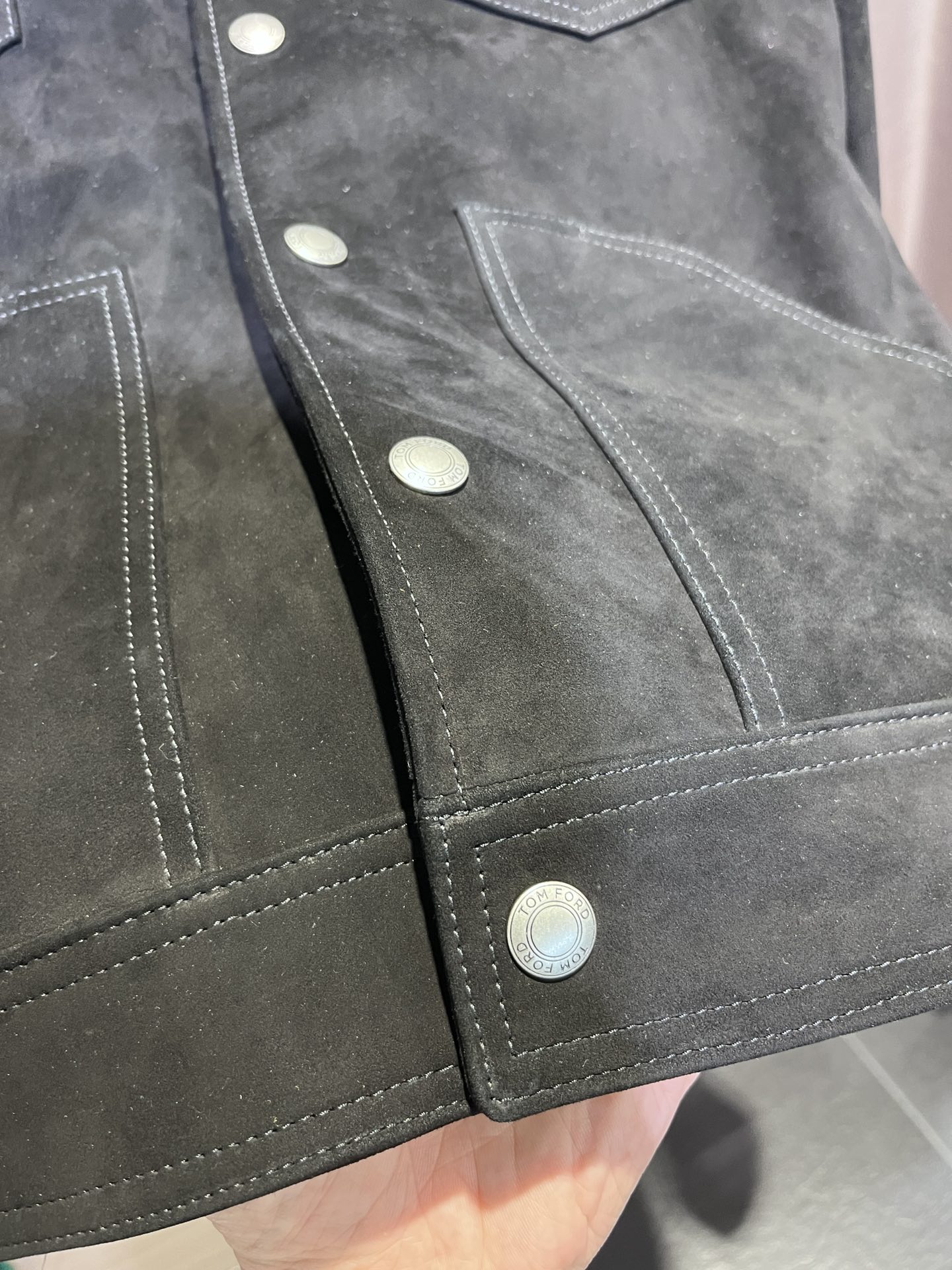 톰포드 슬림핏 스웨이드 트러커 자켓